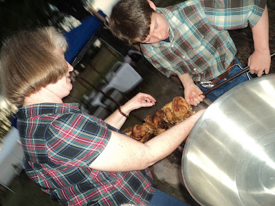 That was a first class post documenting what looked like a first class celebration! You all did it up right! That picture of the boys in their kilts is priceless and I love all the "action" shots! The picture of your sweet Mama in the kitchen looks like it was from years ago! Great job and keep the games alive :)